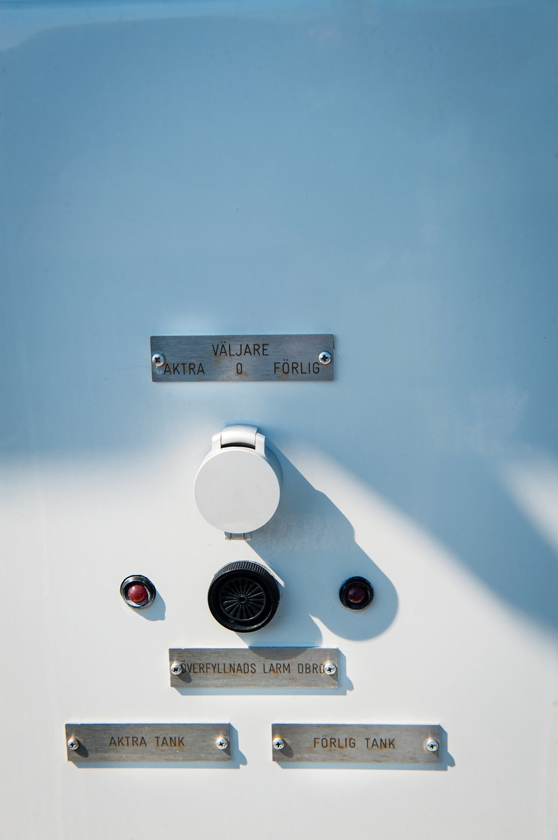 Indikationslampor för larm till bensintankar på en av Kustbevakningens båtar.