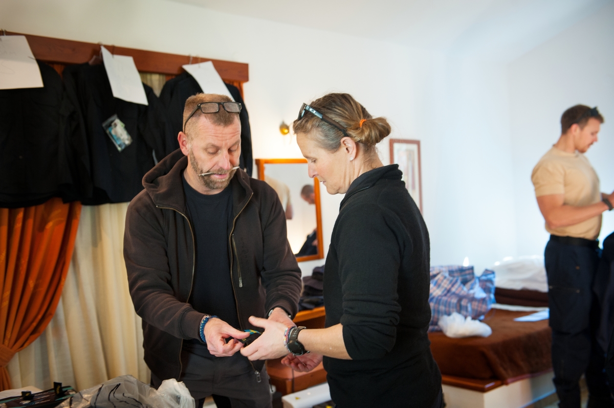 Teamleader delar ut utrustning.