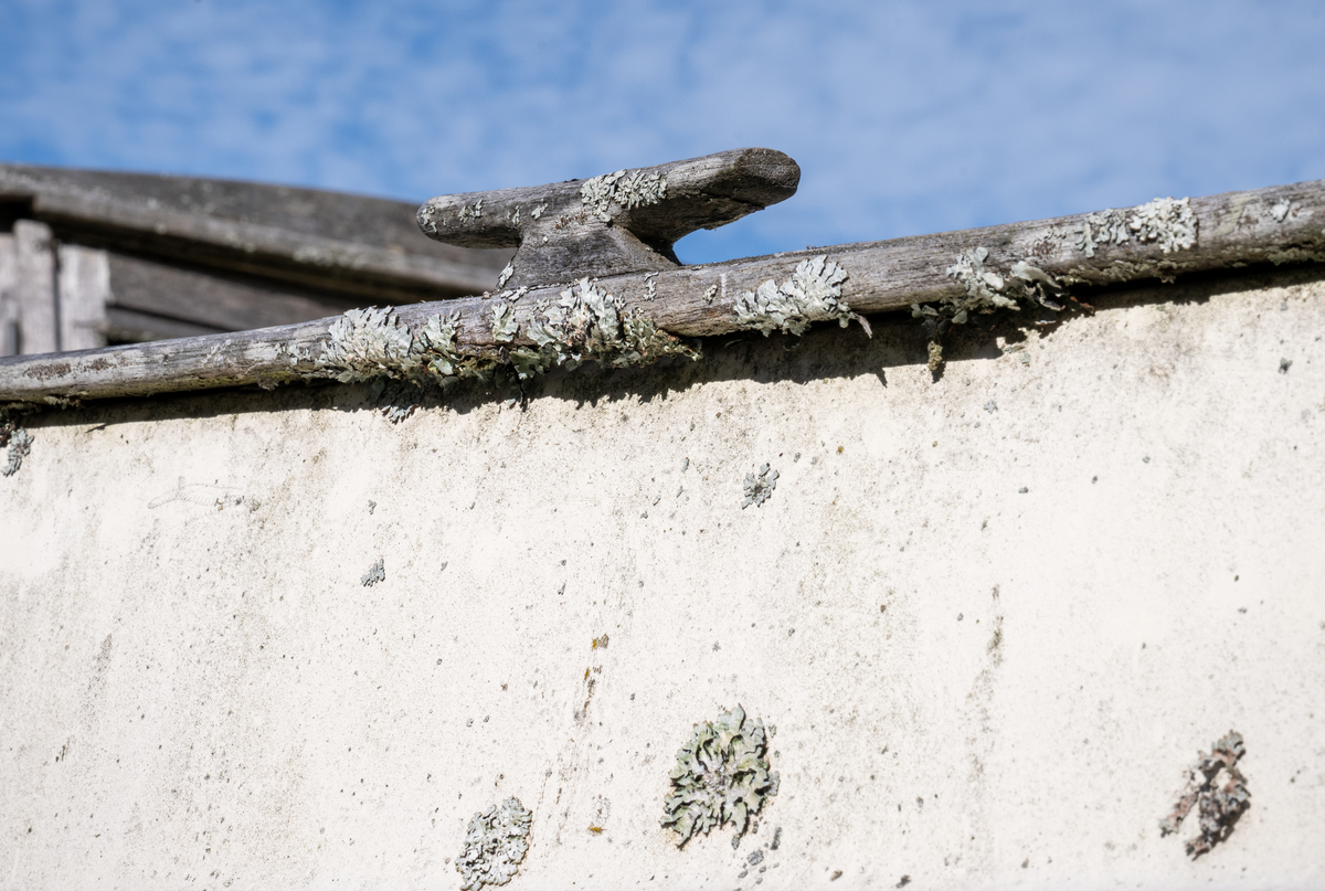Titel: Båtar på båtklubbar där presenningen nötts sönder av väder och vind och glidit av båten.