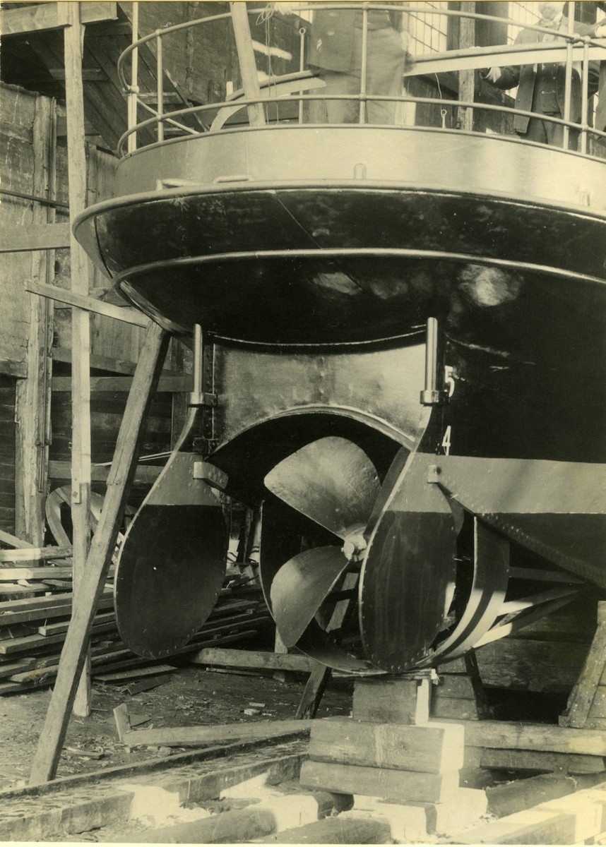 Propellern är försedd med en fast krans, vilken skyddar den mot fasta föremål i vattnet.