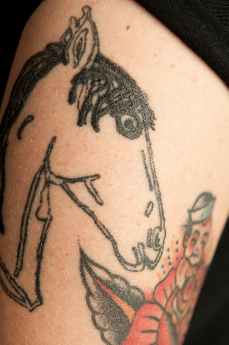 Porträtt och tatueringar på Johan Ray Pederson till utställning Tro hopp & kärlek på Sjöhistoriska.