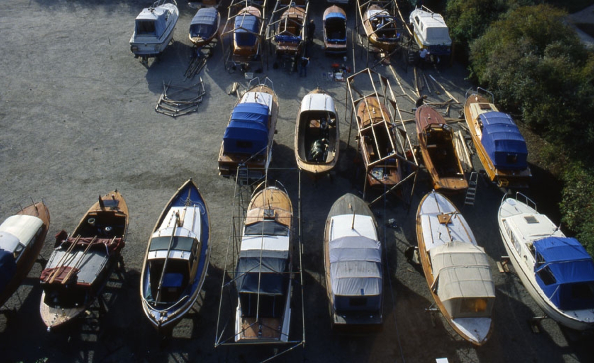 [Text diaram:] STH:LÅNGHOLMEN FOTO: BILL ÖSTRING 2002-09-29 TRÄBÅTAR UPPTAGNING FÖR VINTERN.