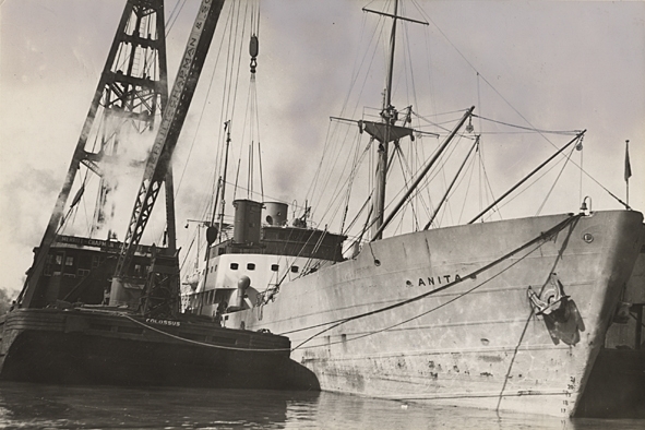 "1937 Lindholmen. 33 man, 300 ton, 12 passagerare."