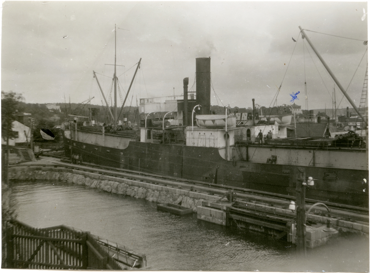 Lastfartyg i östra dockan på Beckholmen, 1920-tal