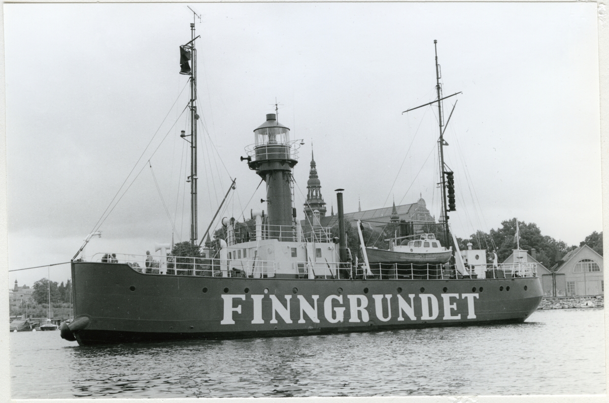 [från fotobeskrivningen:] "FINNGRUNDET flyttas 1980-08-06 från Wasavarvet till museipirar på Galärvarvets område där redan SANT ERIK [sic] ligger."