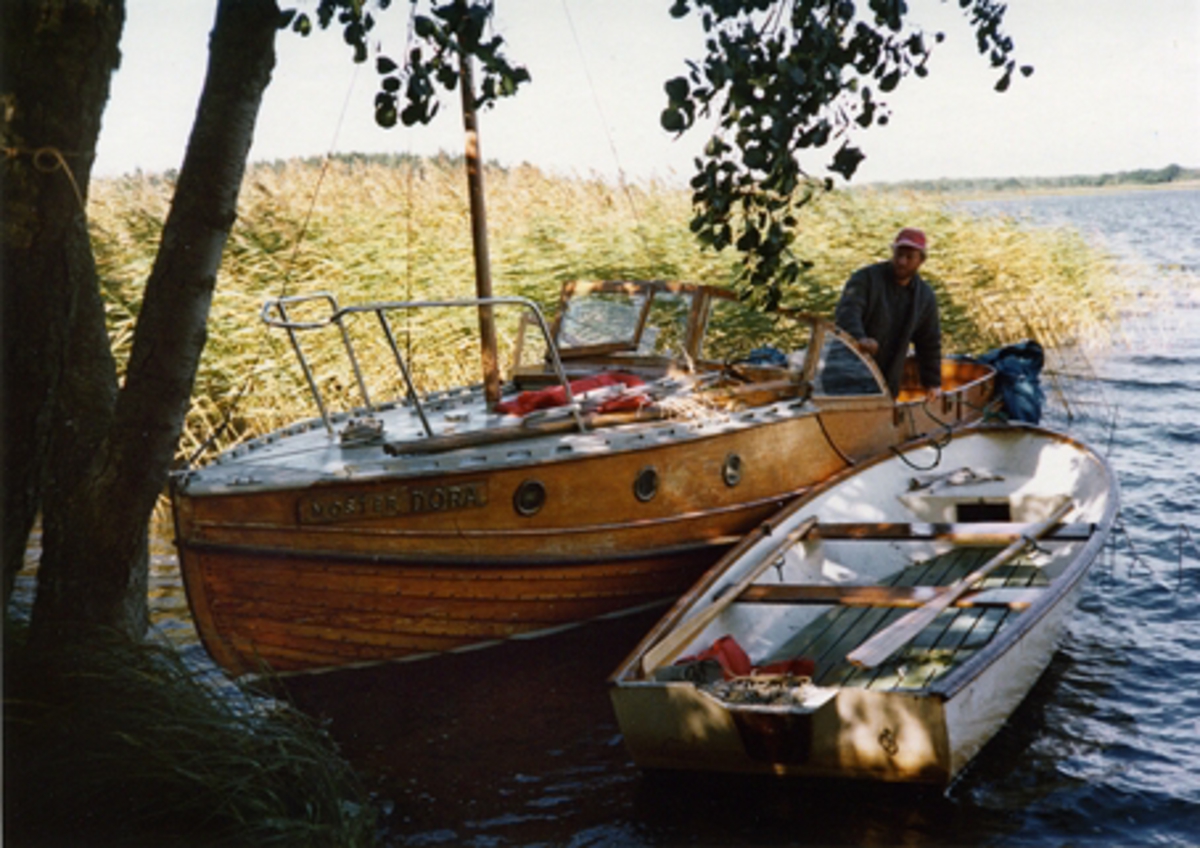 Tillhör rektor Stenström Rosendal, Tosterön [norr om Strängnäs]. I båten Kjell Borneland.
