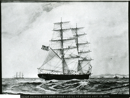 "Gerda" Sveriges sista brigg byggd i Gefle på Brodins varf år 1869.