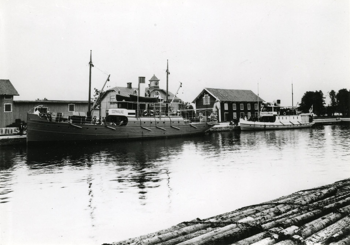 Hamnbild från Nyköping omkr 1910. Vid kajen ligger passagerarfartygen s/s Södermanland och s/s Victoria.