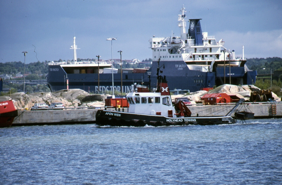 Bogserbåten AFON WEN. I bakgrunden lastfartyget Tor Baltica.
