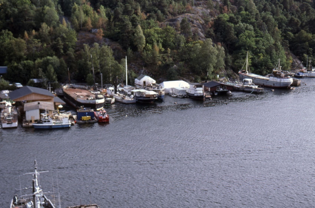 [Vy från Kvarnholmen mot Ryssviken. För området finns idag planer på en "marinstad", byggnader på stationära pontoner.]