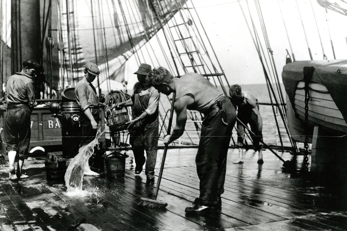 [från fotobeskrivningen:] [---] "Del av besättningen på 'poopen'."