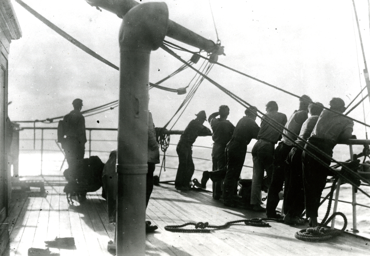 [från fotobeskrivningen:] [---] "Del av besättningen på 'poopen'."