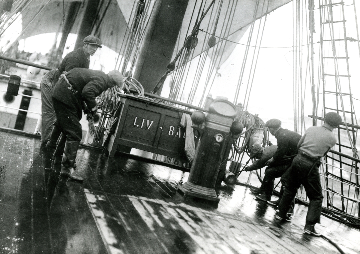 [från fotobeskrivningen:] "Situationsbils [sic] från livet ombord." "Underhåll, situationsbild"