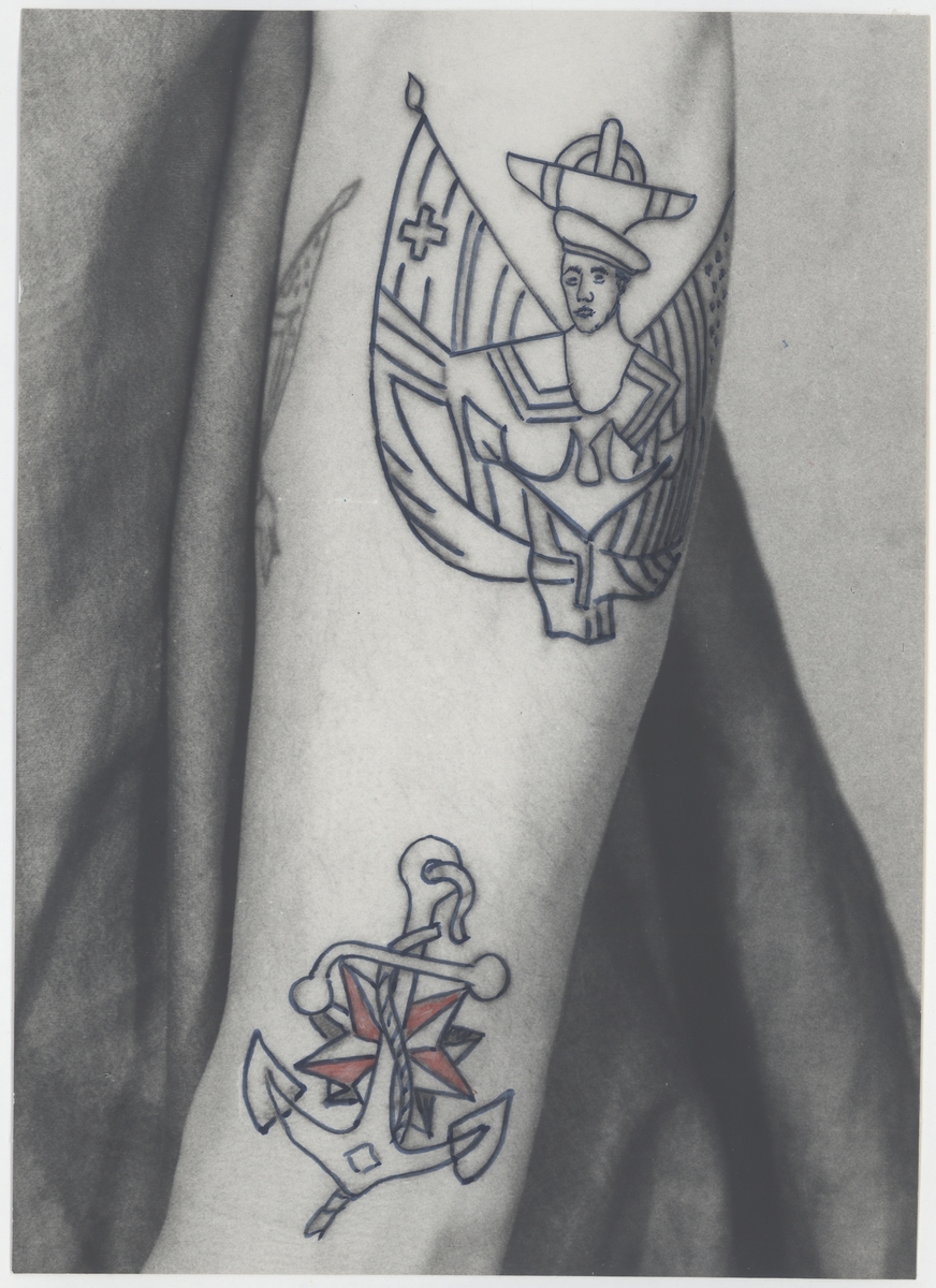 Vänstra armens utsida, handstucket arbete, utfört i Göteborg 1918-20.