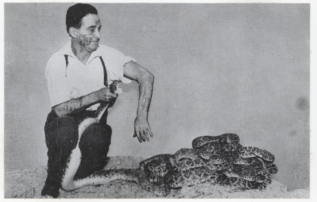 "Havaiian Joe" från Hilo. Tatuerad med ormbilder i ansiktet och på armarna.