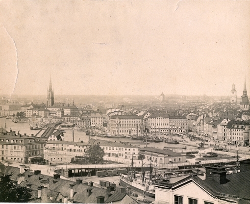 Panorama i två delar. Vänstra [borde vara östra delen! eller åtminstone högra delen] delen se under Skeppsbron. Panorama 1