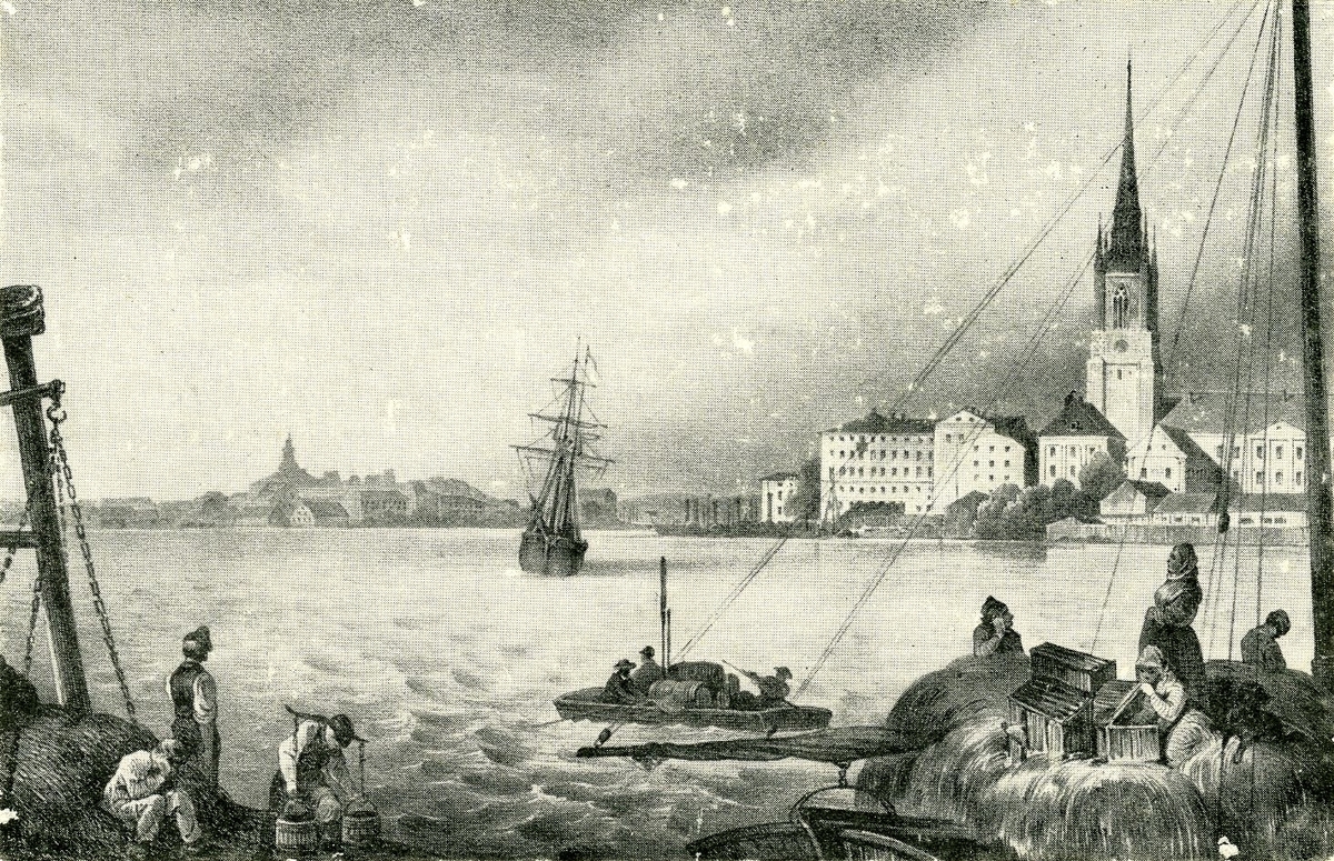 Riddarholmsfjärden och Riddarholmen på 1860-talet.