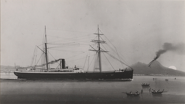 Last- & passagerarångfartyget ATALANTA av Stockholm. Gouache.