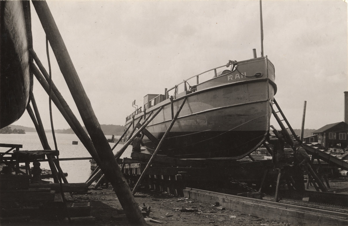Lastmotorfartyget RAN av Hässelby (Stockholm), senare YMER, byggd vid Ekensbergs Varv 1912 på slipen.