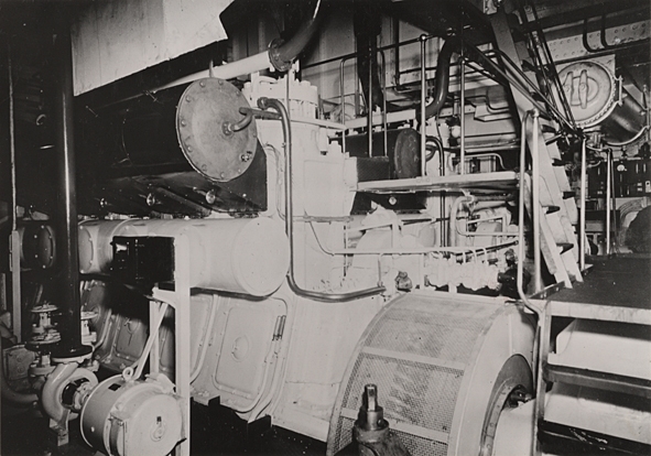Lastmotorfartyget FREJA av Stockholm. Maskinrummet.