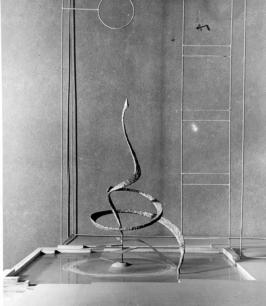 Skulptur, Spiral åtbörd, skiss, höjd 80 cm, försilvrad brons.