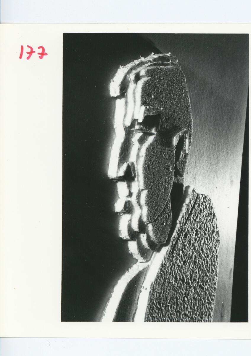 En bild av en skulptur, relief, porträtt av Ulf Linde.