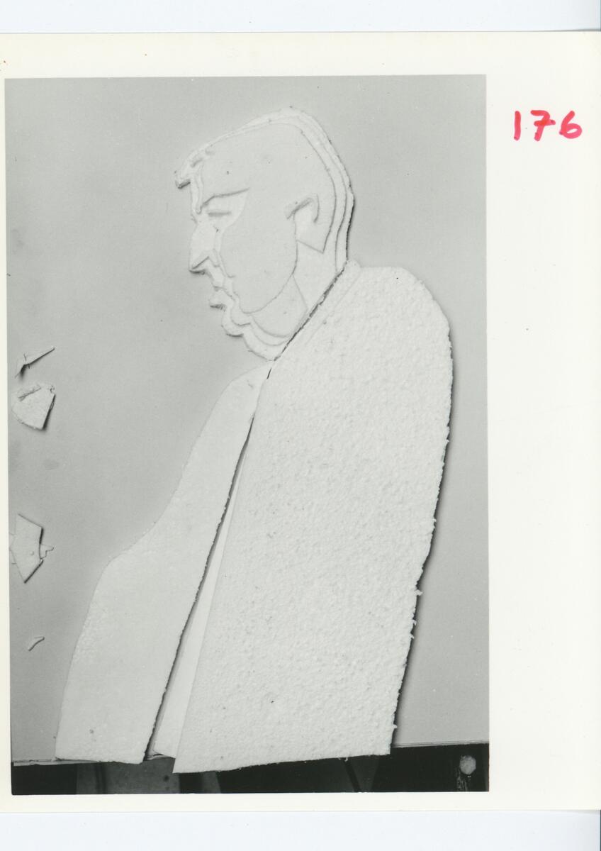 En bild av en skulptur, relief, porträtt av Ulf Linde.