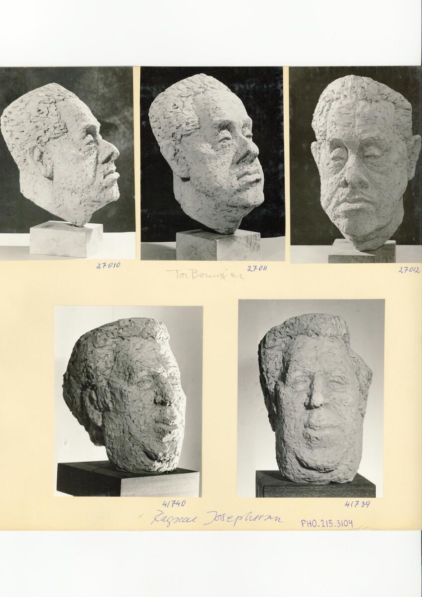 3 bilder av en skulptur, porträtt av Tor Bonnier, 2 bilder av en skulptur, porträtt av Ragnar Josephsson.