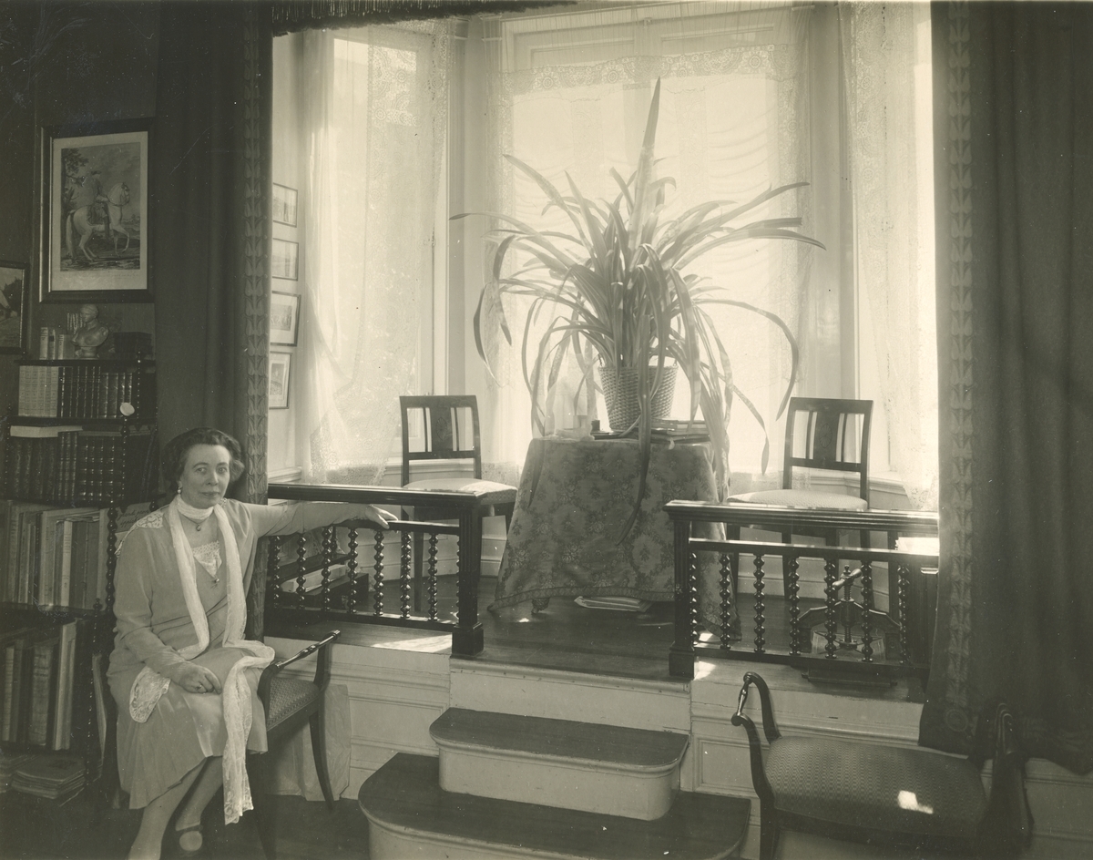 Interiör från makarna Emil och Emy Ficks hem på Birger Jarlsgatan 20, Stockholm. På bilden ses Emy Fick.