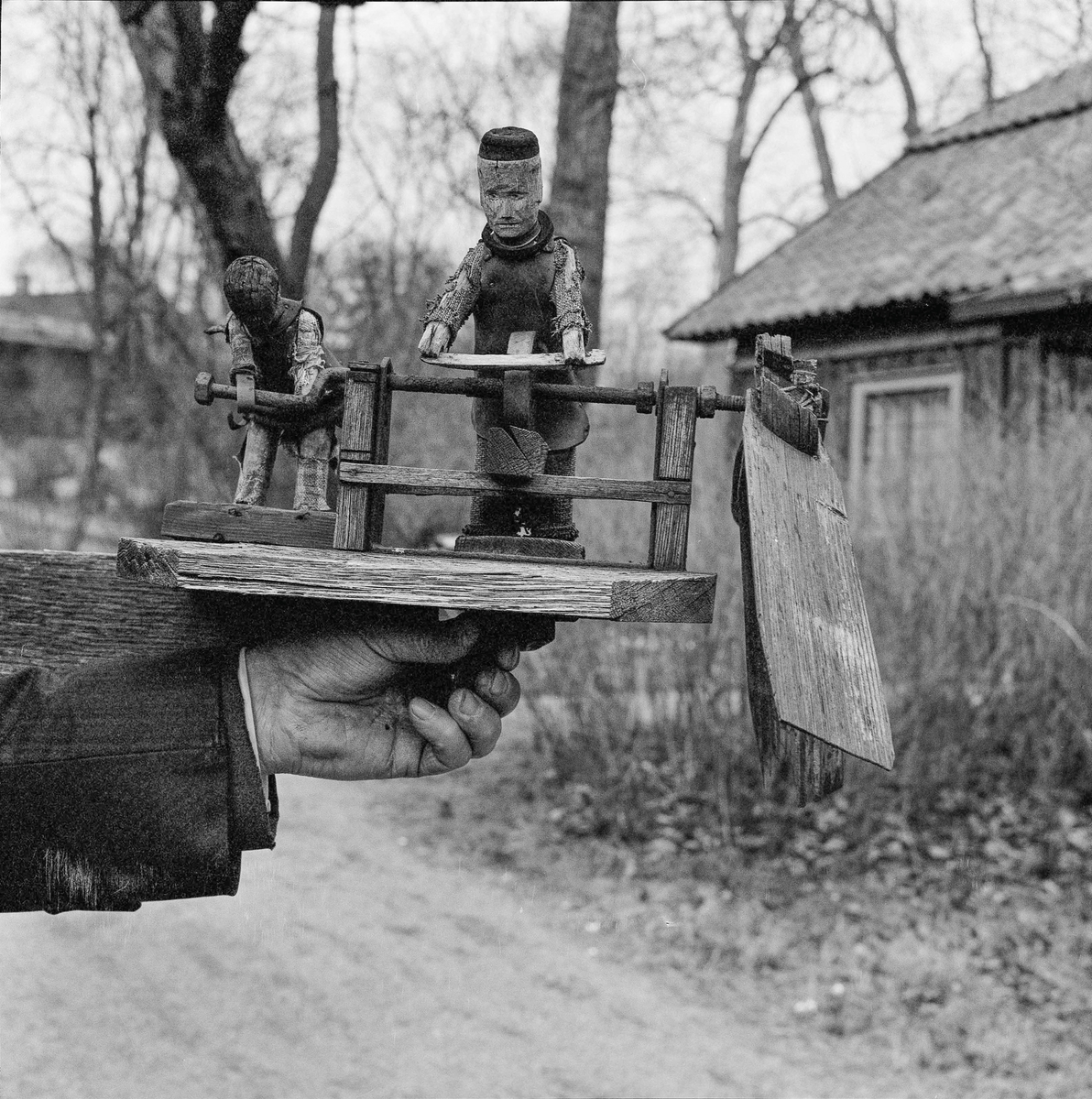 Vindflöjel, "gubben och gumman". En figur som vevar och en figur som slipar en kniv/lie.