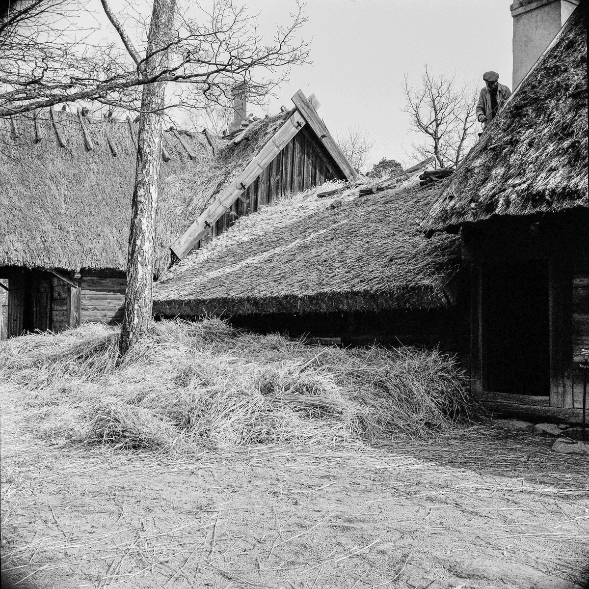Titel: Halmtaksläggning Oktorpsgården, Skansen, 1965
