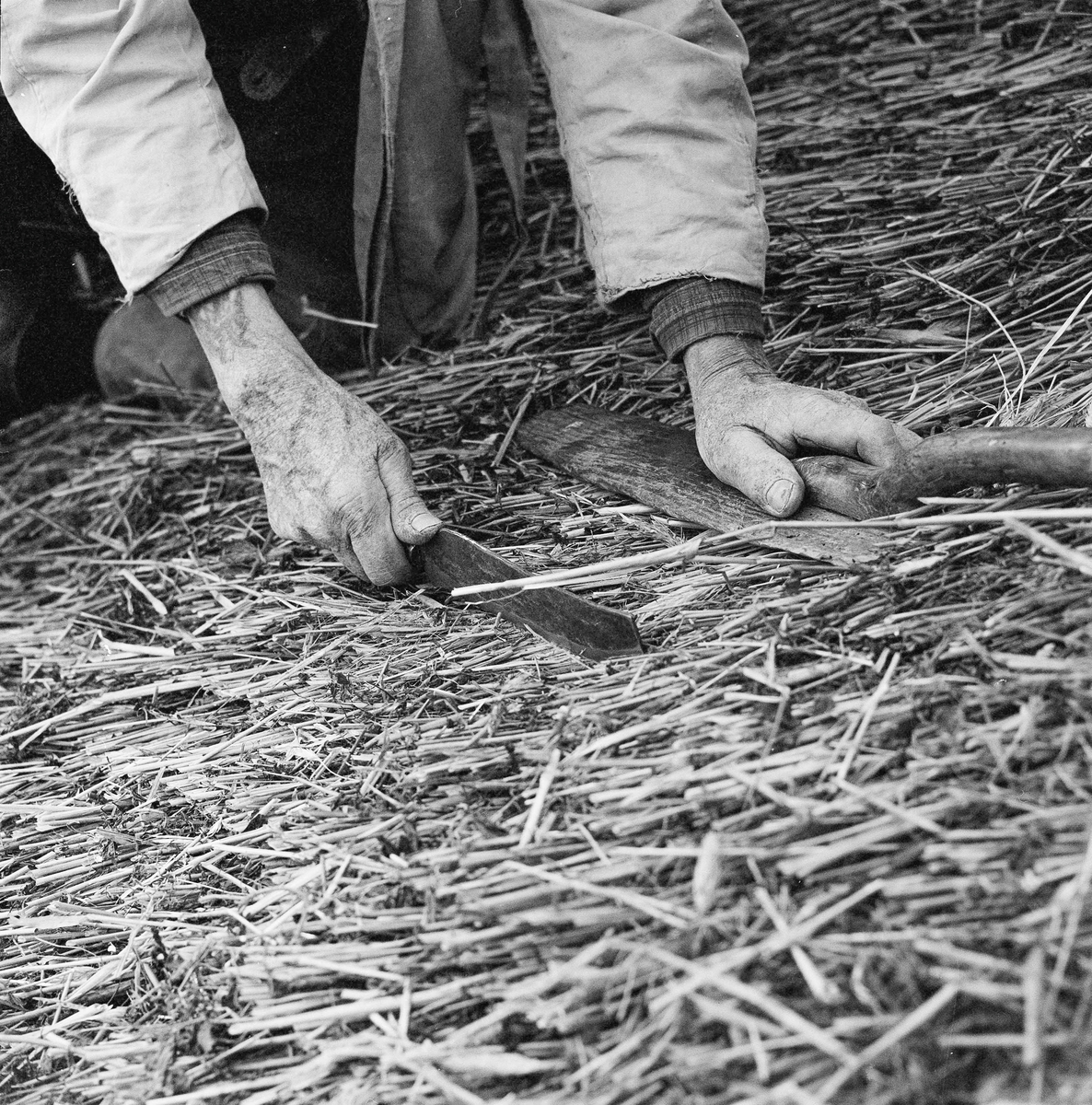 Titel: Halmtaksläggning Oktorpsgården, Skansen, 1965