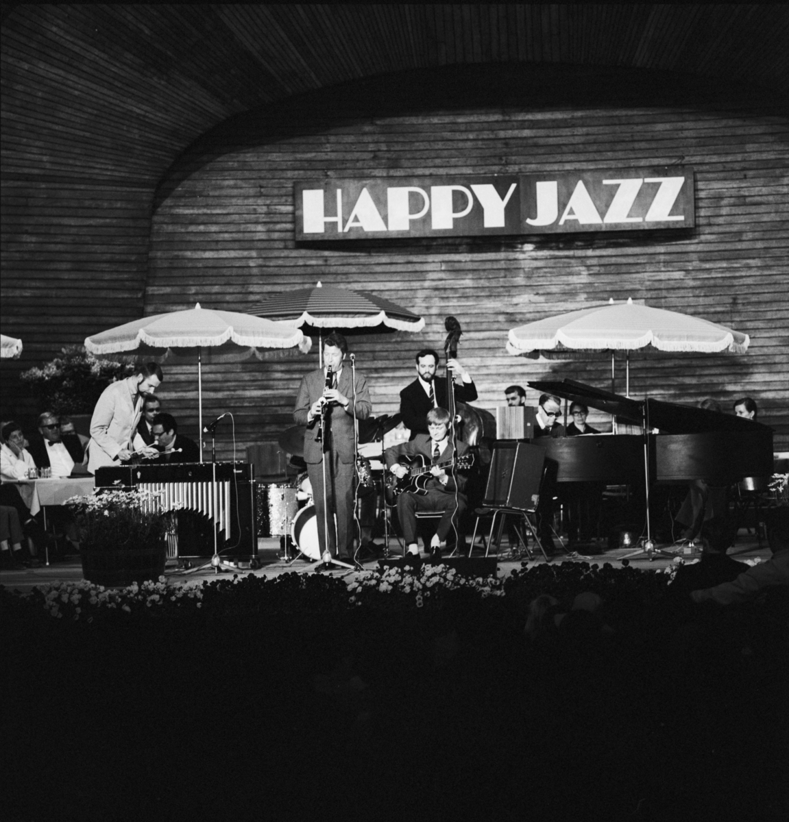 Evenemanget "Happy Jazz" på Sollidenscenen, Skansen. Ove Linds orkester och Rune Gustavsson (gitarr).