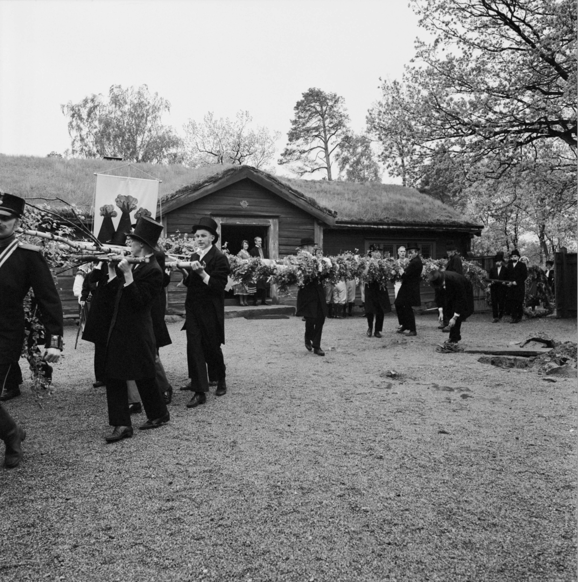 Titel: Festlighet vid Laxbrostuga, Skansen. Troligen allmogbröllop.