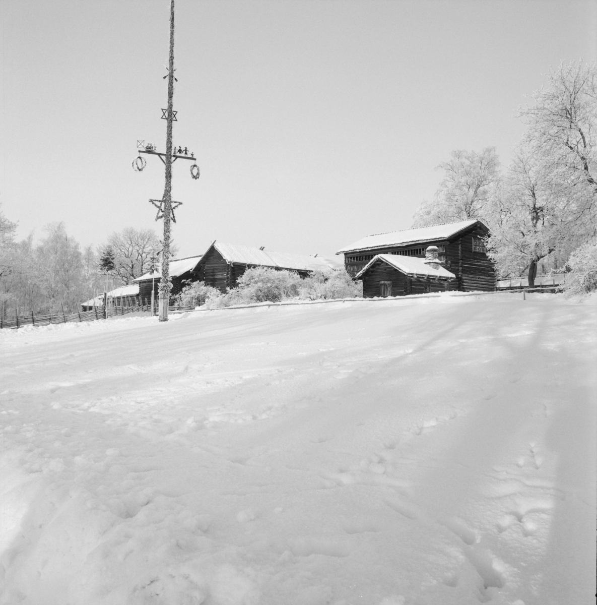 Vinterbilder på gårdar, ute och inne. Moragården, Skansen.