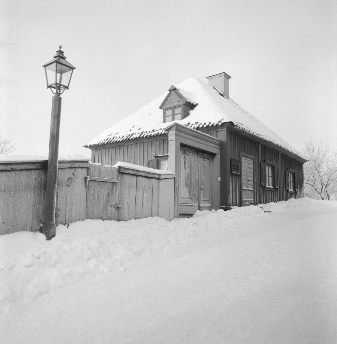 Vinterbilder på gårdar, ute och inne. Sparbankshuset, Skansen.