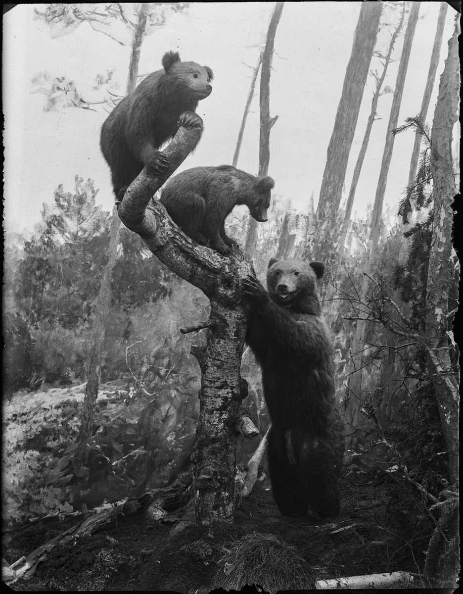 Diorama från Biologiska museets utställning om nordiskt djurliv i havs-, bergs- och skogsmiljö. Fotografi från omkring år 1900.