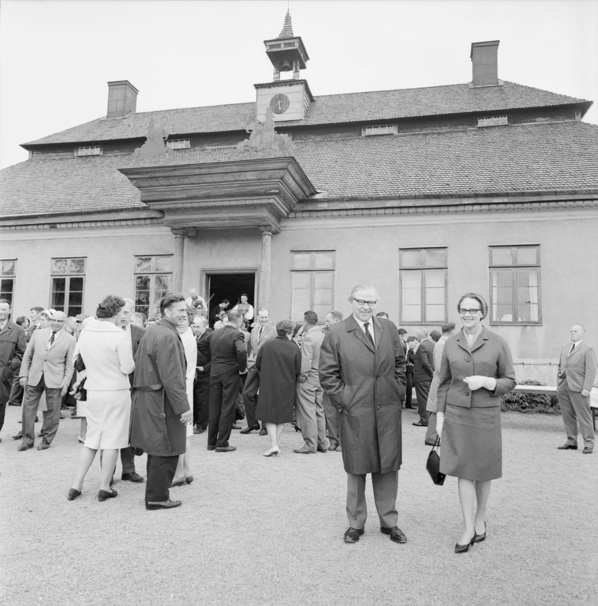 Titel: Besökare utanför Skogaholms herrgård, Skansen.