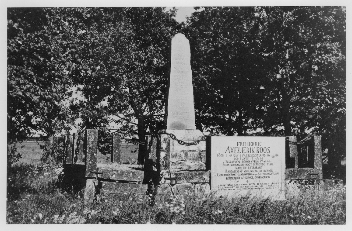 Gestad, Minnessten över Gestads gamla kyrka och Friherre Roos.