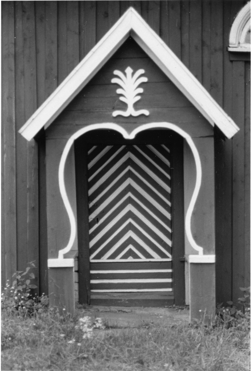 Skunk i Nedre Borghult i Skephult sn med extra dekor i form av ett utsågat sliliserat lövträd som målats vit liksom konturen på det mönster hjärtformade "nyckelhålet "