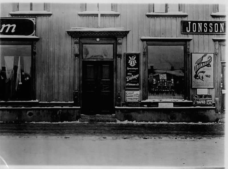 Affärsfönster, del av Bergströms hus, numera rivet, Kungsgatan 9 Vänersborg