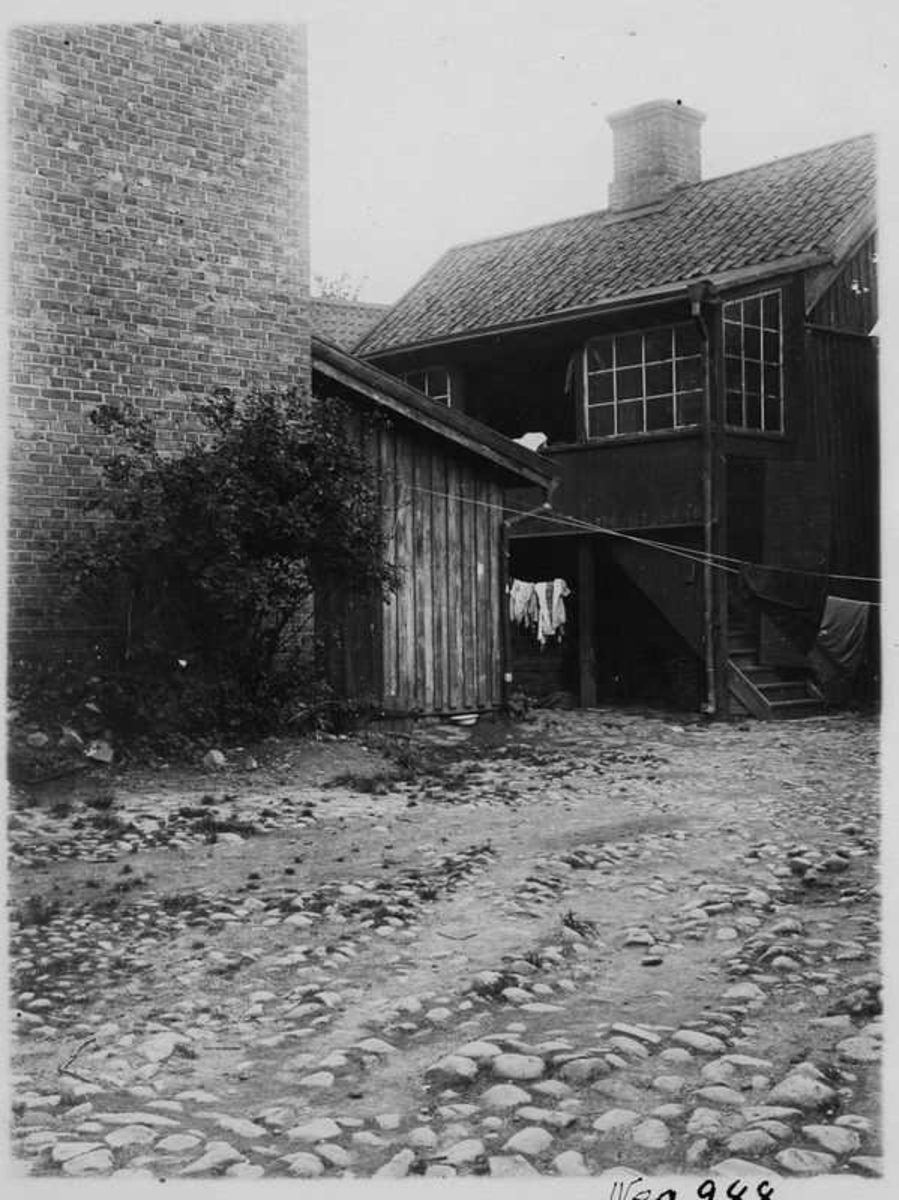 Bakgård, gårdsinteriör till fastigheten i hörnet av Drottning- och Kyrkogatorna, Kyrkogatan 26 Vänersborg