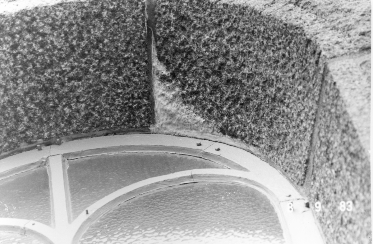 Trollhättan, Gärdhems kyrka. Detalj av bågformat fönster.