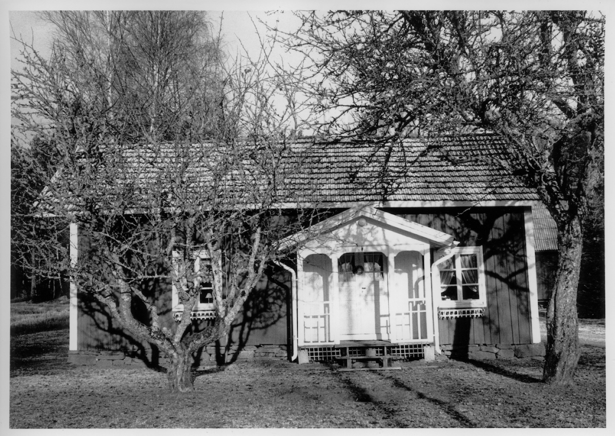 Låg träbyggnad med veranda. Lagmanstuga Ljungsarp