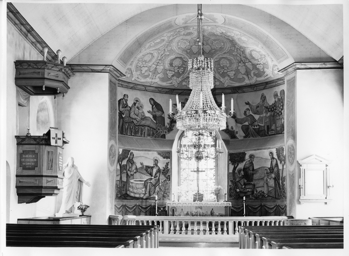 Titel: Interiör. Kor. Predikstol. Kullings-Skövde kyrka