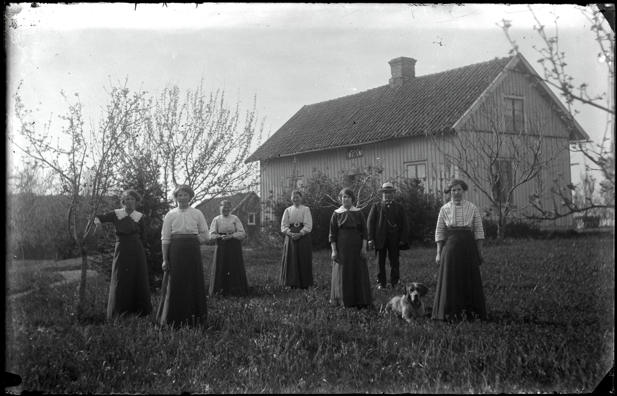 Familj framför bostadshus