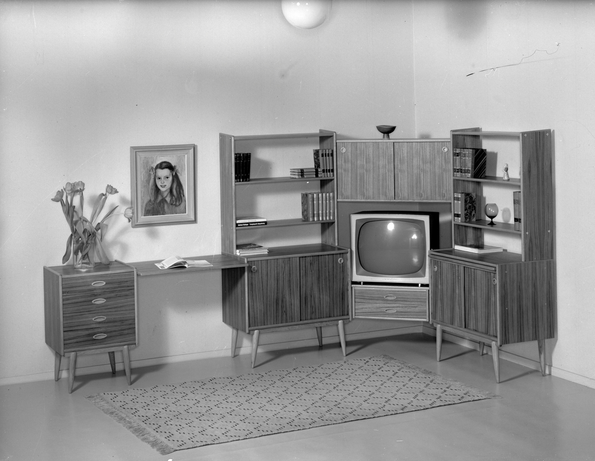 Seriehylla med TV-hörna och skrivbordsdel