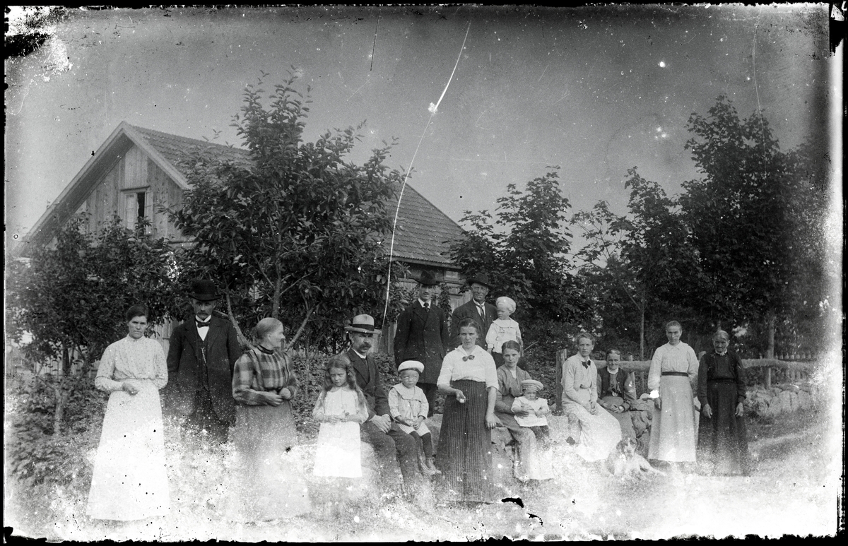 Släkten samlad vid bostadshus