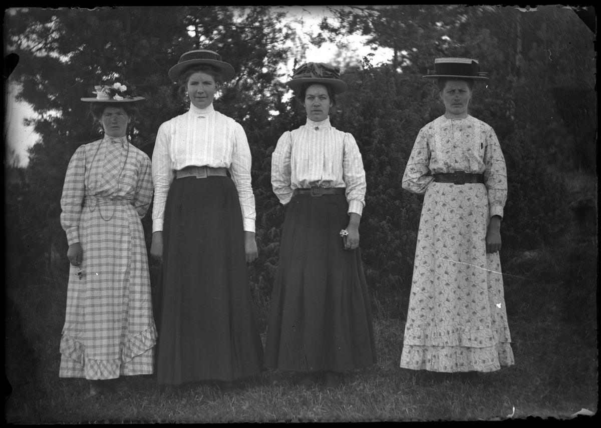 Fyra kvinnor i stora hattar