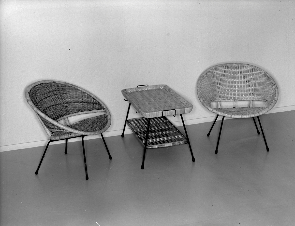 Två korgstolar och korgbord